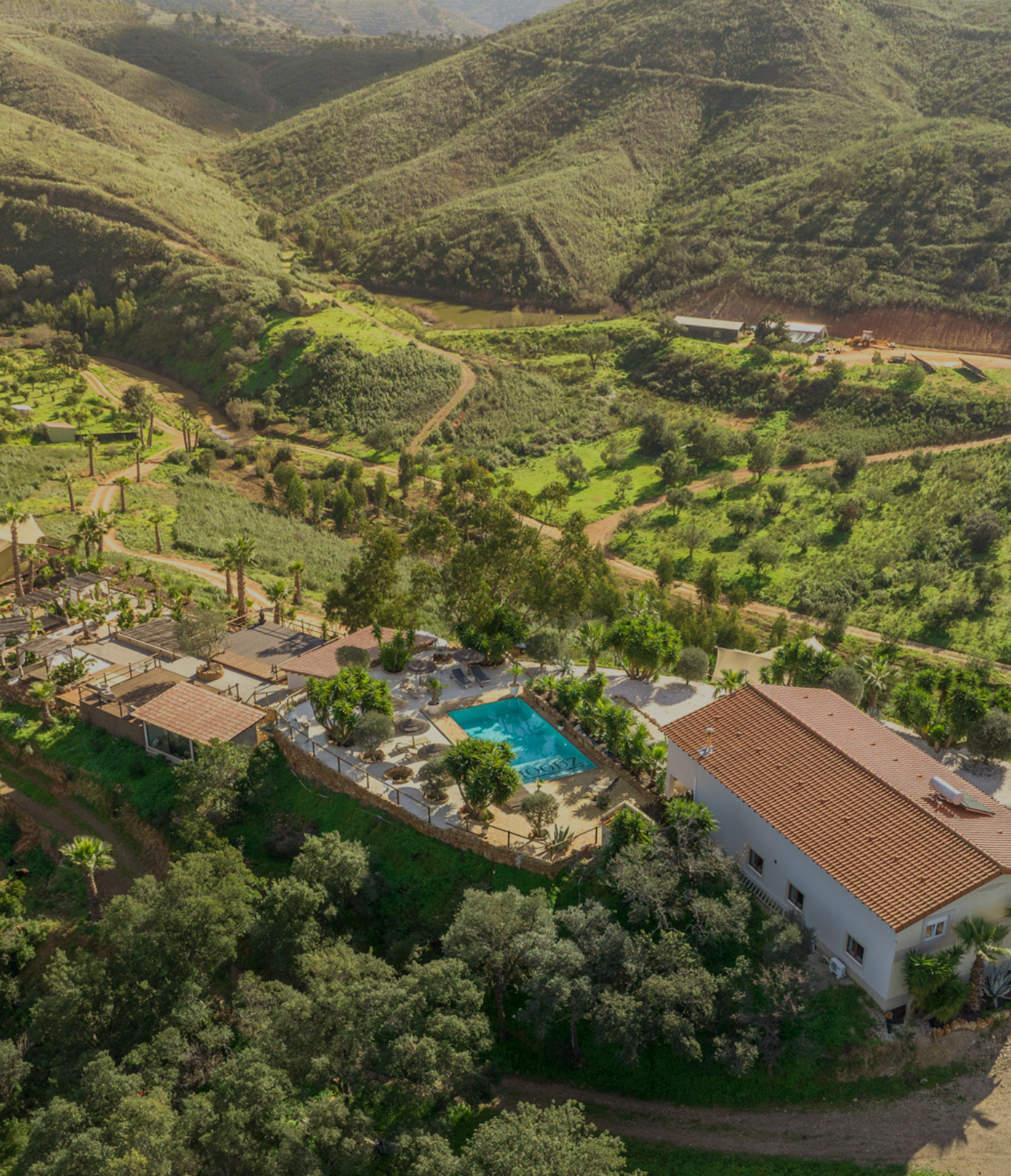 Our private home for the week is nestled in a secluded valley in South Portugal, cradled by rolling hills, wild olive trees and wide open skies.